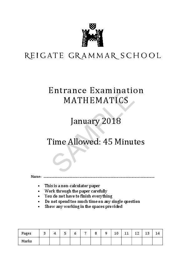 Product name: 212-reigate_grammar_school-11+Mathematics-2018.pdf
