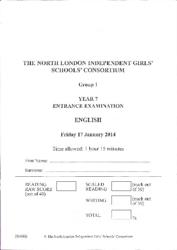 This is a past 11+ English paper or a sample 11+ English paper from this school. It will be delivered as a PDF that you can download immediately after checkout.