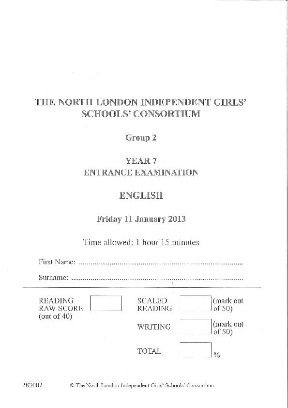 South Hampstead High School: 11+ English (2013) [Version: Group 2]