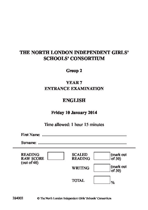 Queen’s College School: 11+ English (2014) [Version: Group 2]