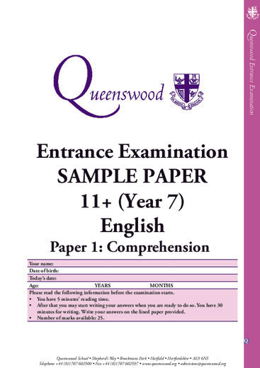 This is a past 11+ English paper or a sample 11+ English paper from this school. It will be delivered as a PDF that you can download immediately after checkout.