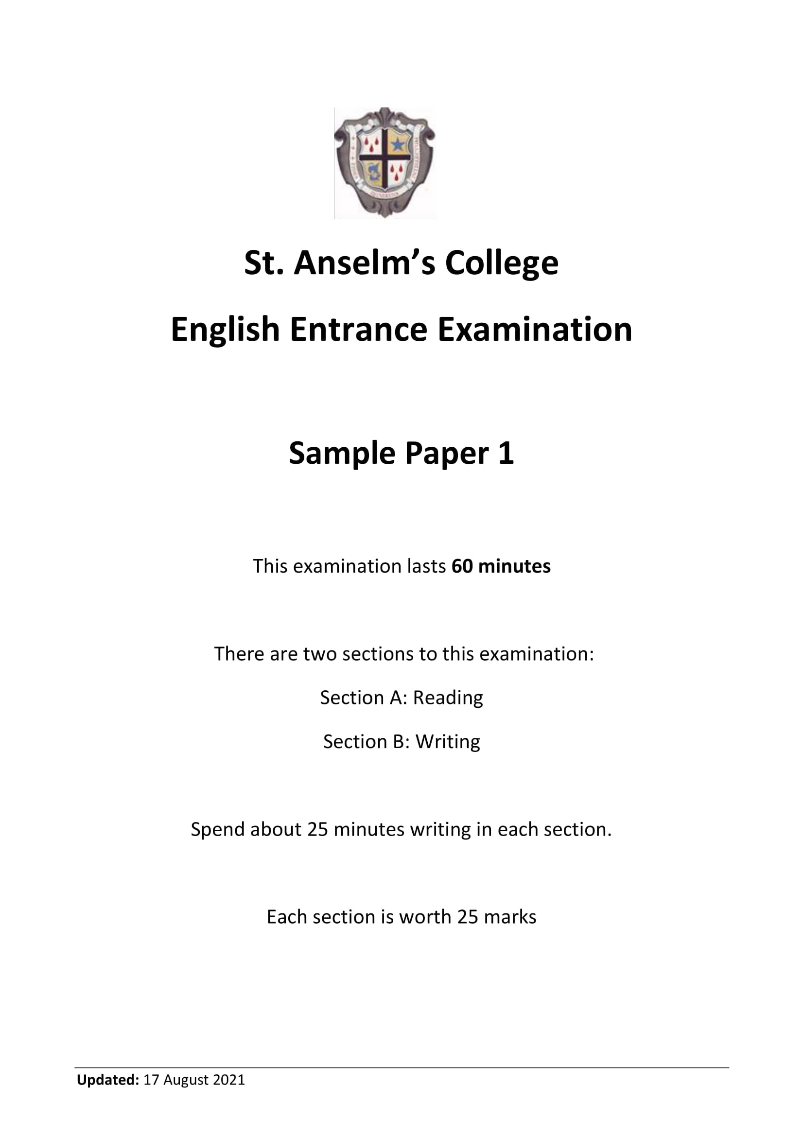 St. Anselm's College: 11+ English [Sample] [Version: 2]
