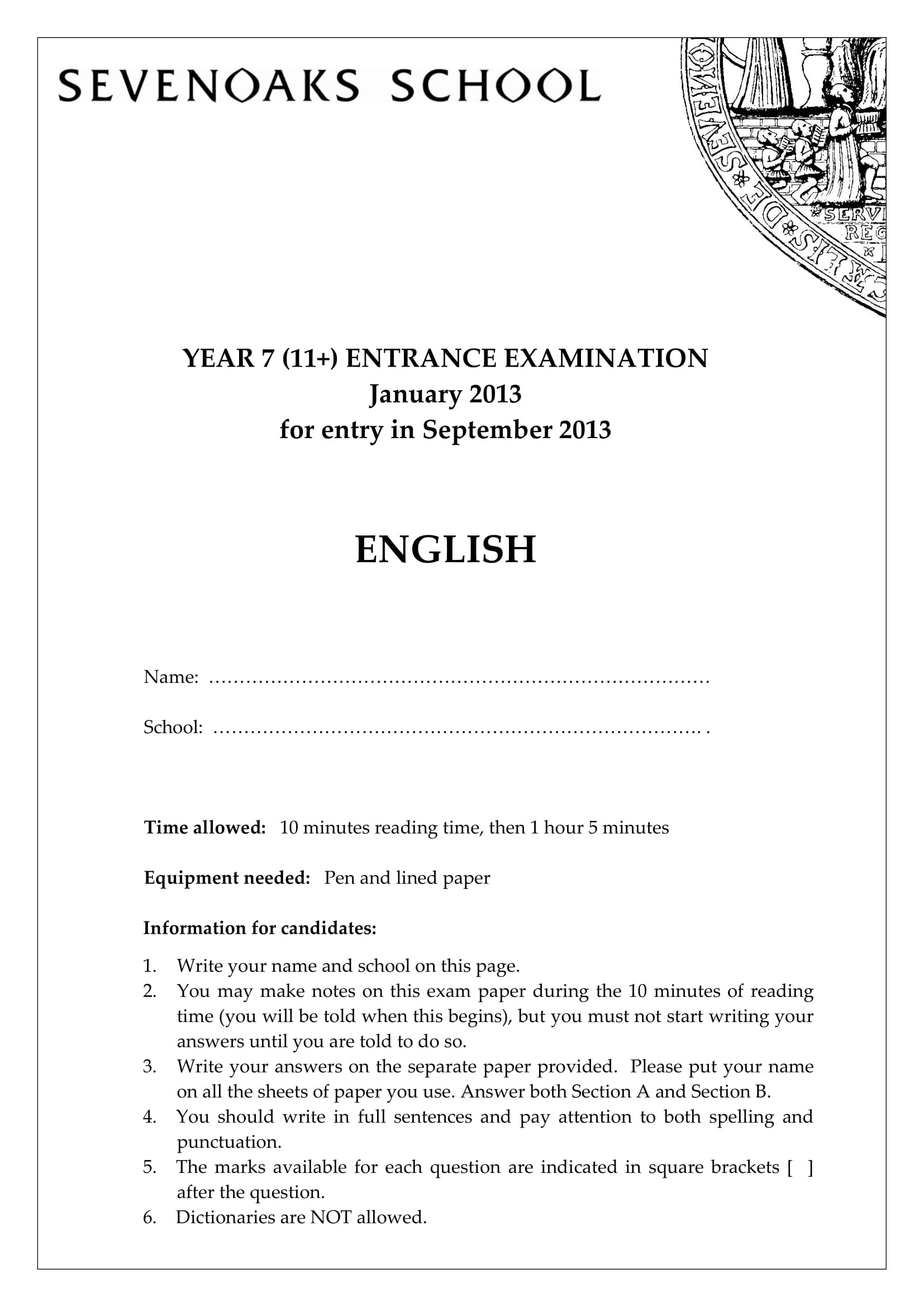 This is a past 11+ English paper or a sample 11+ English paper from this school. It will be delivered as a PDF that you can download immediately after checkout.